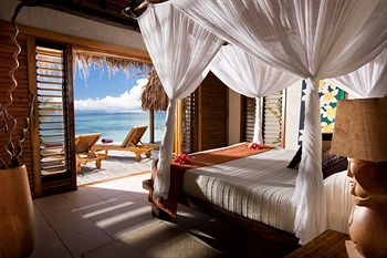 The luxury Bures at Tokoriki all feature air-conditioning, ceiling fans, king beds, outdoor and indoor showers, and a private deck steps from the water.